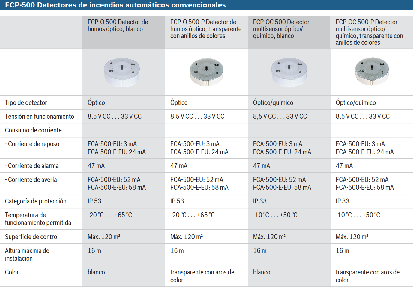 Bosch, Detección de Incendios Convencional Bosch EN54, Detectores Convencionales, Detectores Convencionales Bosch Serie 500 Perfil Ultra-Plano, Sistemas Convencionales