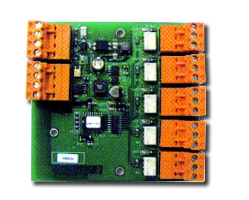 Tarjeta provista de 5 relés con contactos libres de tensión válidos para la repetición de las señales de alarma, prealarma y avería de un detector MICRO·SENS®