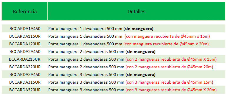 | CARRO PORTA MANGUERA PLANA DE 45 mm | BCCARDA115UR, BCCARDA120UR, BCCARDA1A450, BCCARDA215UR, BCCARDA220UR, BCCARDA2A450, BCCARDA315UR, BCCARDA320UR, BCCARDA3A450 |