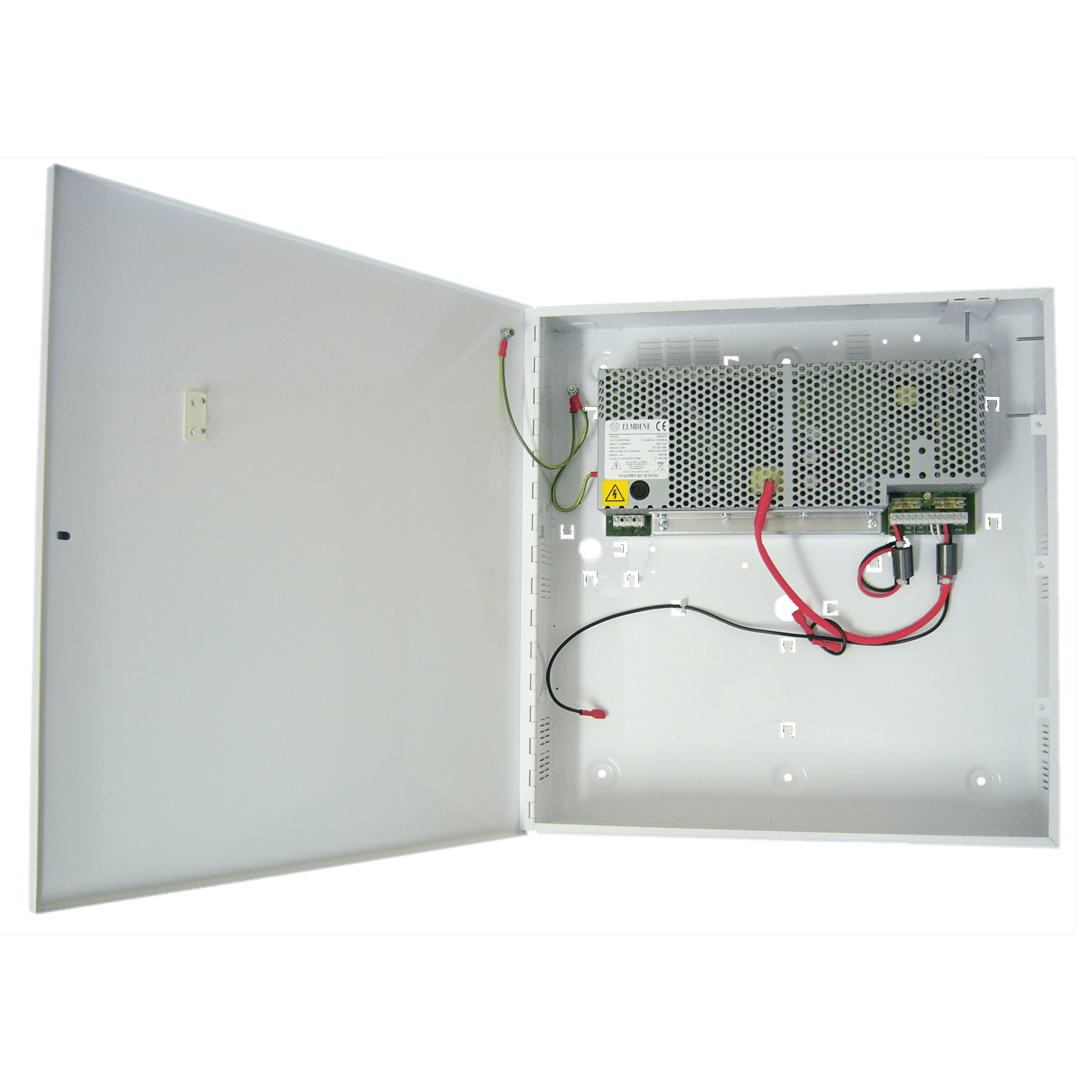 Fuente de alimentación supervisada de 24V. Montada en caja y con cargador de baterías de hasta 17Ah. Precisa 2 baterías referencia BS131N (no incluidas).