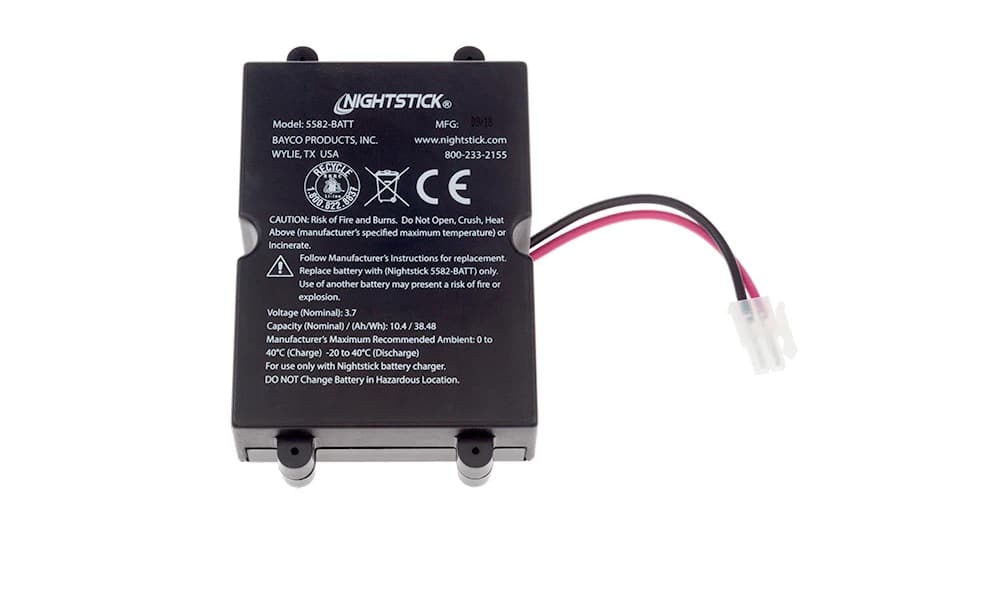El 5582-BATT es una batería de iones de litio de repuesto/de repuesto para las linternas multifunción intrínsecamente seguras XPP-5582RX y XPR-5582GX. Al igual que todas las baterías de iones de litio, esta unidad no tiene efecto de memoria de recarga, lo que significa que se puede cargar poco o mucho sin afectar la vida útil de la batería.