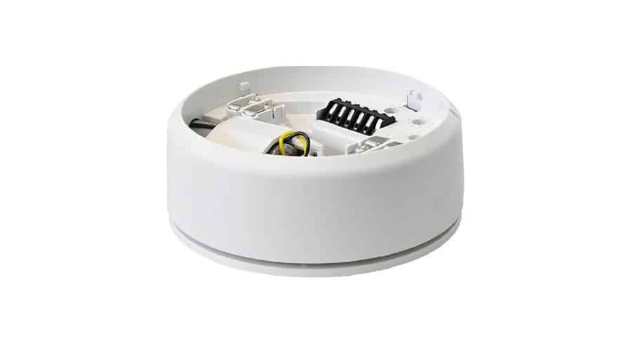 Sirena base de detector con 32 tipos de tono de alarma y evacuación seleccionables.