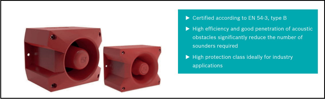 -La alta eficiencia y la buena penetración de los obstáculos acústicos reducen notablemente el número de dispositivos de aviso acústico necesarios