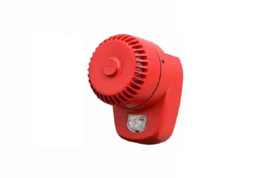 Sirena con dispositivo de alarma visual convencional para montaje en pared, flash blanco/base roja. EN54-23