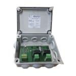 Es un módulo de dos salidas de relés de accionamiento simultáneo (con una sola función), tanto en su tipo de aplicación (sirena, maniobra o prealarma), como en su temporización y combinación de sensores que los activan.