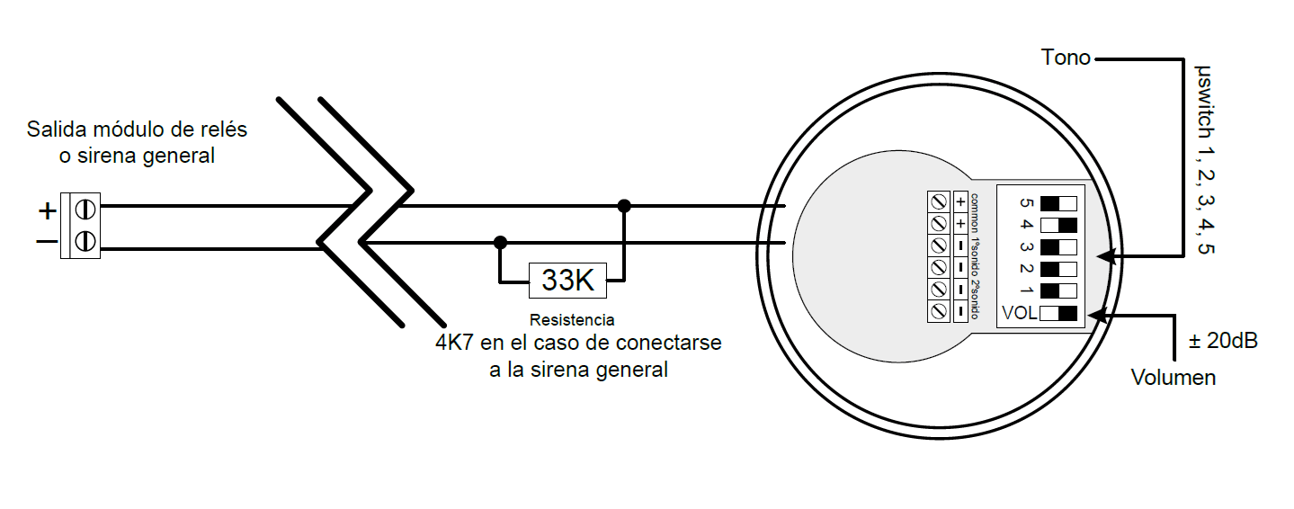 Sirena de interior y exterior para conectarse directamente a la salida de sirena de las centrales o módulos de relés.