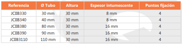 Notas: la parte intumescente del collarín contiene Grafito y puede causar irritación a nivel de las manos y de los ojos. Se recomienda la utilización de guantes y gafas de seguridad durante la manipulación e instalación.