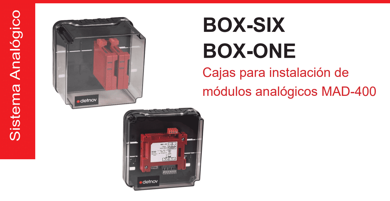 Caja transparente para 6 módulos analógicos de la serie MAD-400 – Detnov BOX-SIX