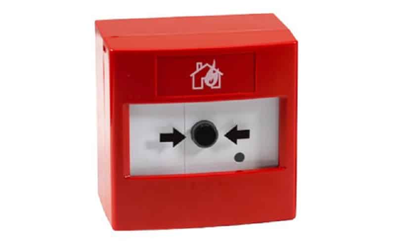 Pulsador de alarma analógico rearmable con aislador incorporado para montaje en superficie.