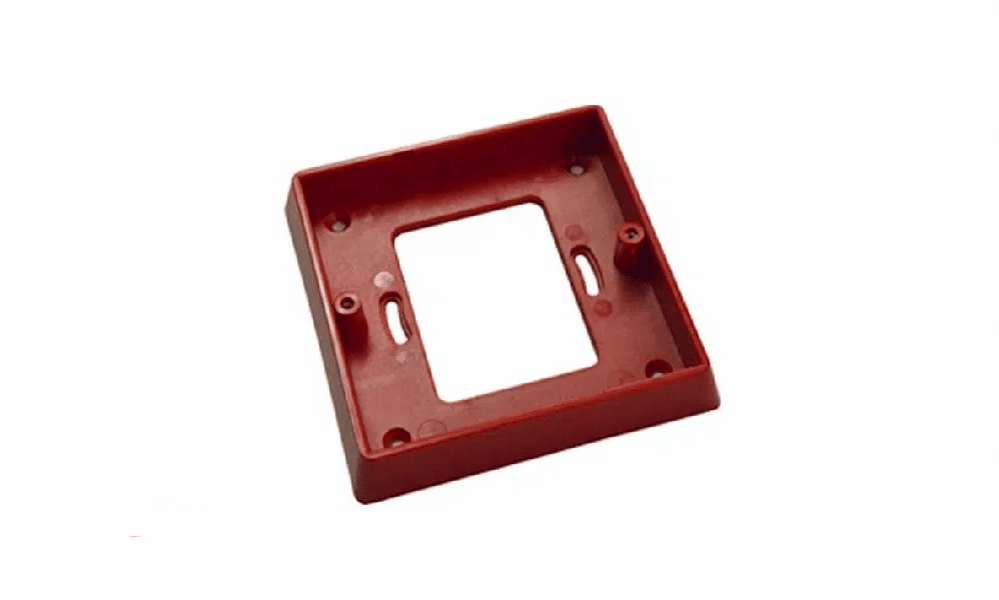 Suplemento de empotrar para pulsadores de uso interior: MAD-450, MAD-450-I y PCD-100. Este suplemento permite empotrar el pulsador en la pared. Está fabricado en plástico ABS rojo y encaja con los pulsadores MAD-450, MAD-450-I y PCD-100.