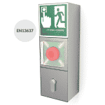 Tapa basculante de protección para los pulsadores de uso interior: PCD-100, MAD-450 y MAD-450-I.