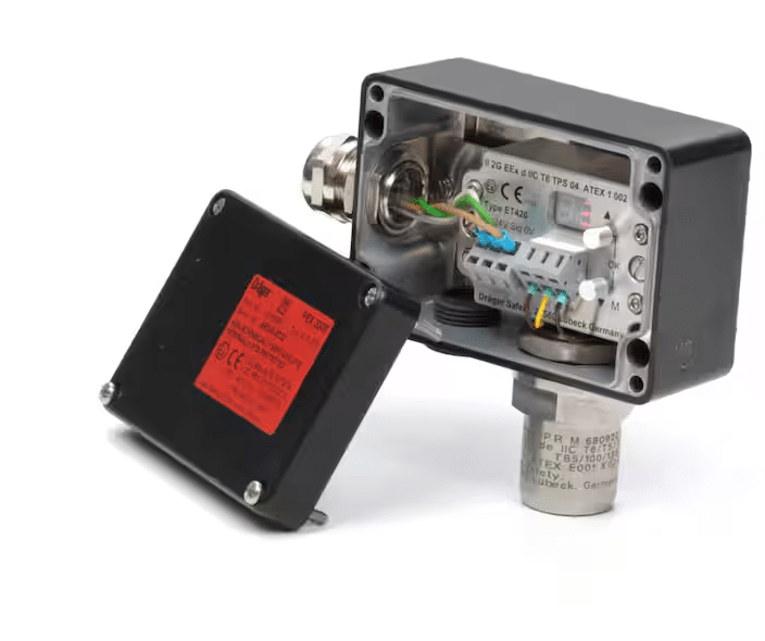 El transmisor Dräger PEX 3000 detecta gases y vapores combustibles en concentraciones inferiores al límite inferior de explosividad (100 % LIE). Aumenta la protección de la planta frente a posibles explosiones. El sensor de perlas catalíticas proporciona una señal de medición de larga duración estable y reacciona al gas en apenas unos segundos.