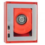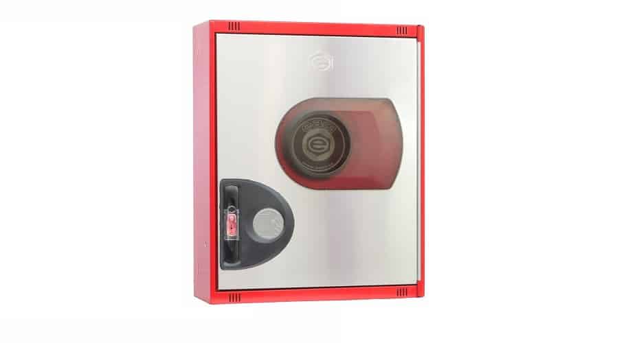 Cerradura Glide reversible con moldura y precinto de seguridad.