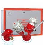 Desmultiplicador para accionamiento de válvula, con arrastre metálico.