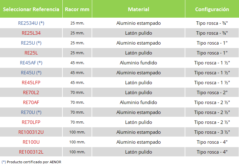 Racor Barcelona Ø25, 45, 70, y 100mm.