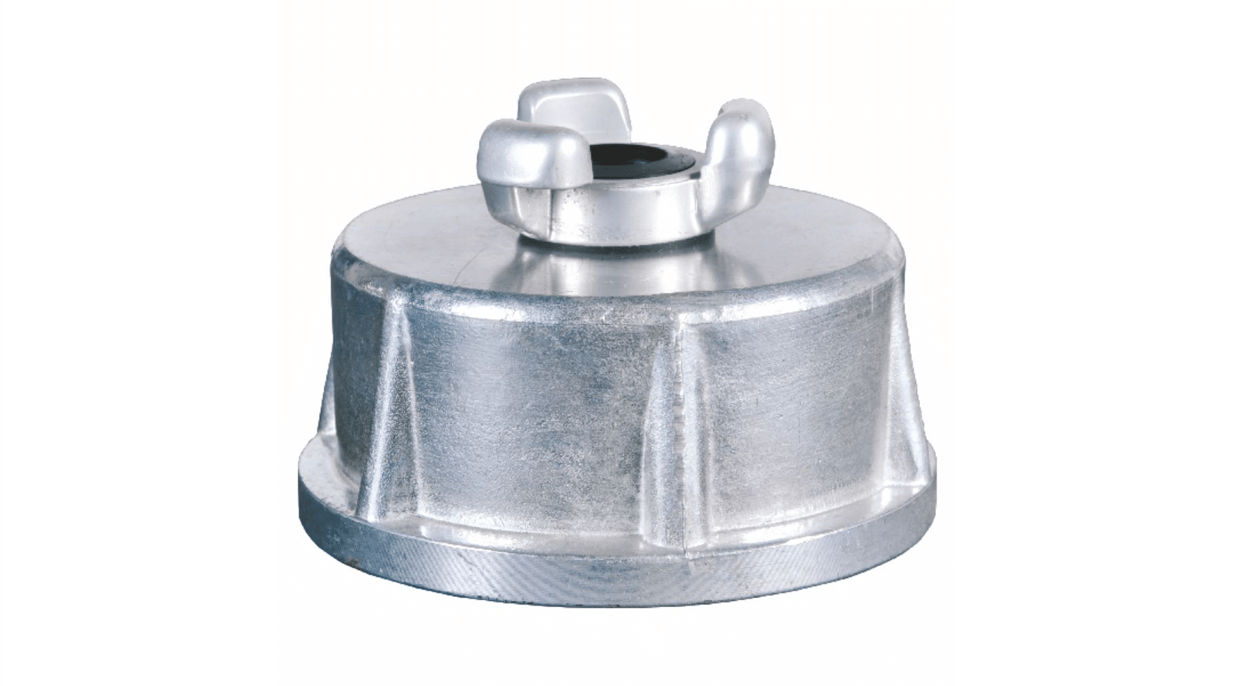 Tapón bombero de 100mm con racor Barcelona de ø25mm en aluminio estampado.