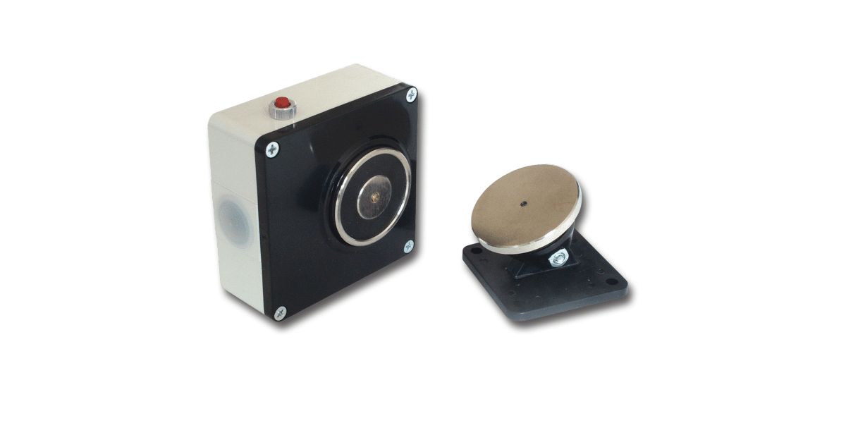 Los electroimanes de la serie 1350 y 1360 se utilizan para mantener abiertas las puertas de paso o cortafuegos y liberarlas automáticamente en caso de incendio.