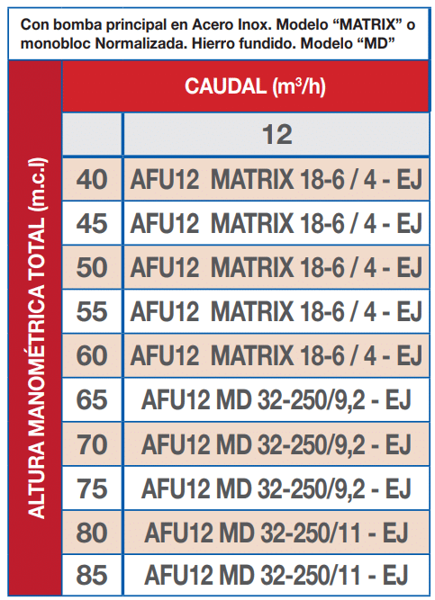 Tabla de selección Serie AFU12