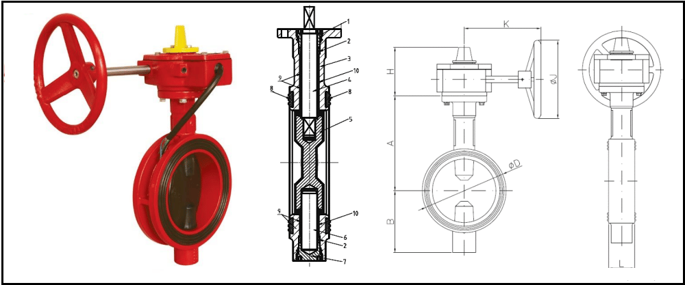Válvula Mariposa tipo Wafer con Reductor Manual y Microrruptor Final de Carrera