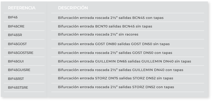 Hoja Técnica de Producto Bifurcación BIF45