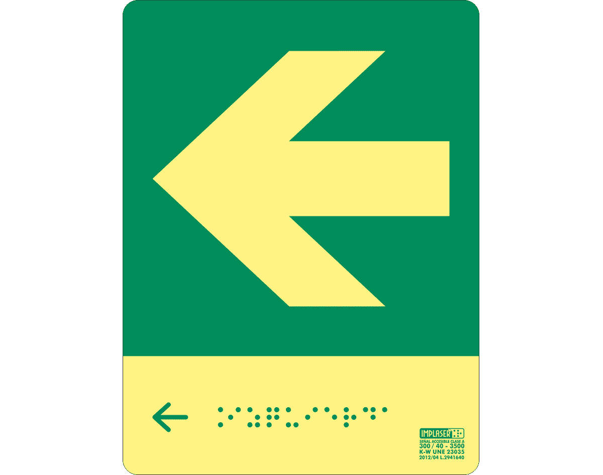 Señal de Salida Izquierda Braille Clase A Certificada – CTE – Implaser ACC102L