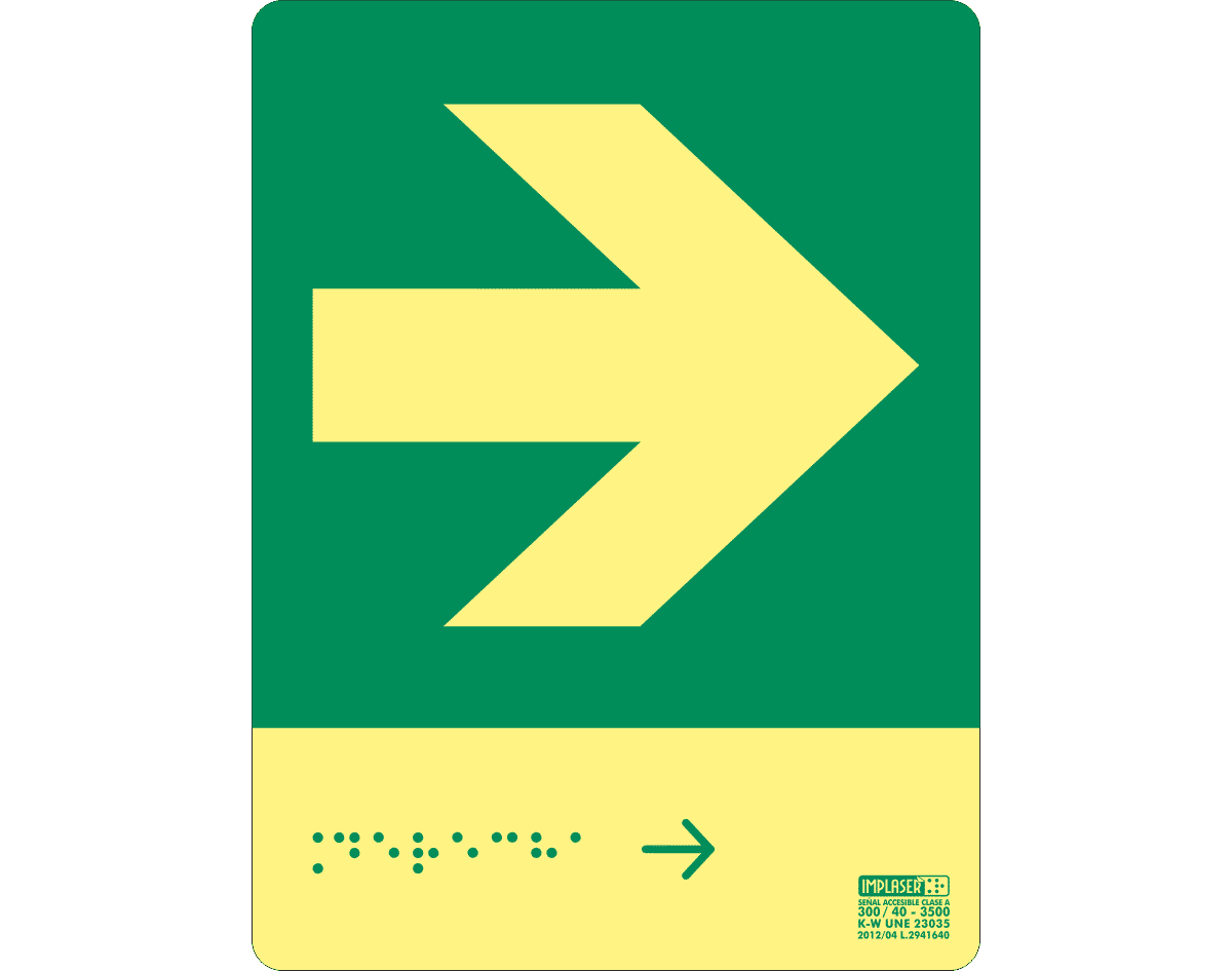 Señal de Salida Derecha Braille Clase A Certificada – CTE – Implaser ACC107L