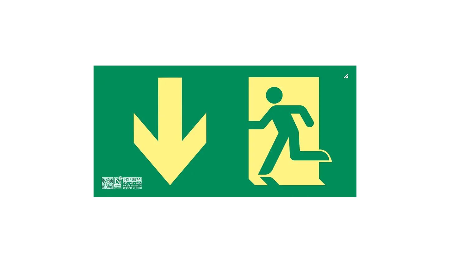 EV357L Señal de Salida Puerta Abajo Clase A Fotoluminiscente Certificada – CTE – Implaser