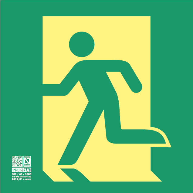 EV368L Señal de Salida Izquierda Clase A Fotoluminiscente Certificada – CTE – Implaser
