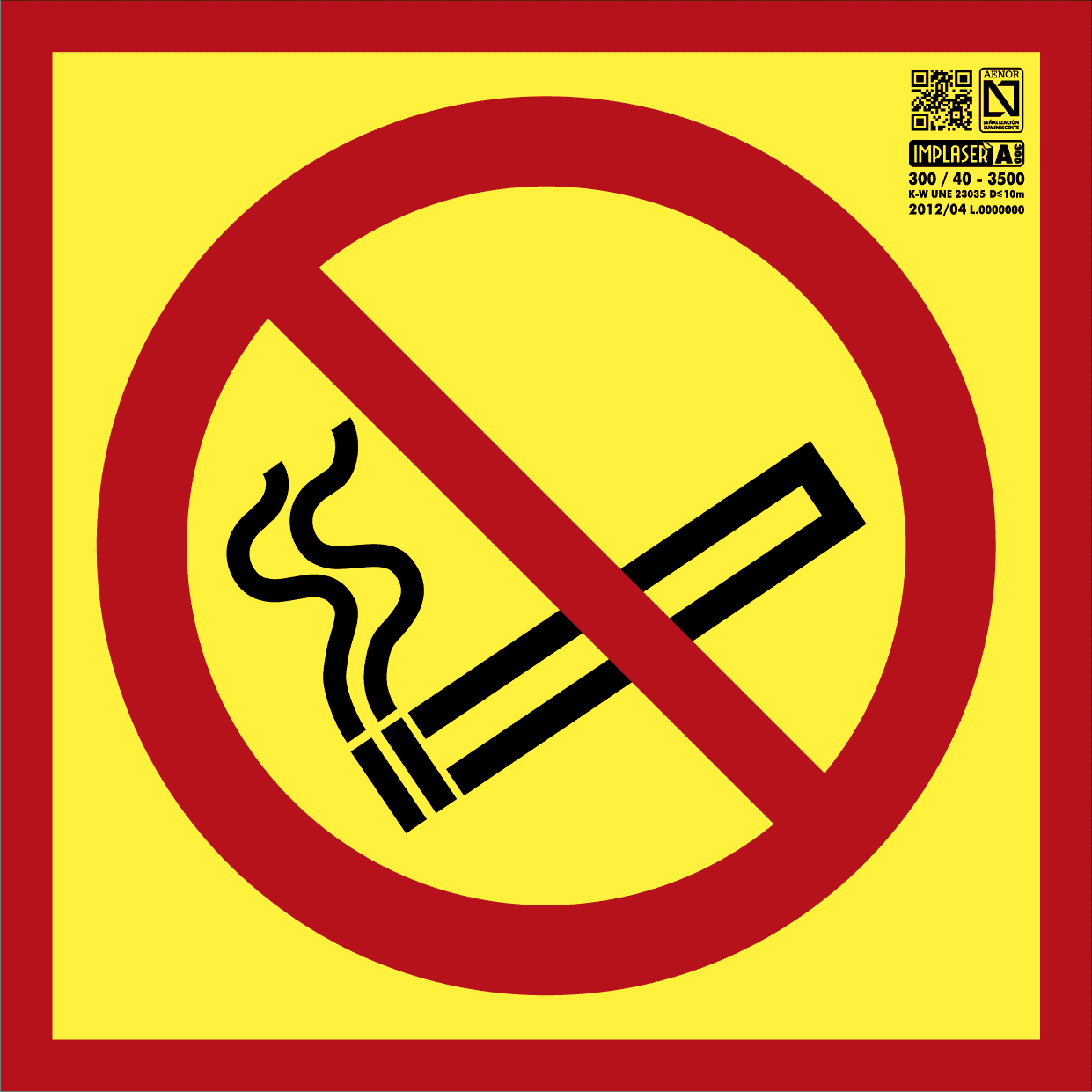 Señal de Prohibido Fumar Clase A Fotoluminiscente Certificada – CTE – Implaser PR201L