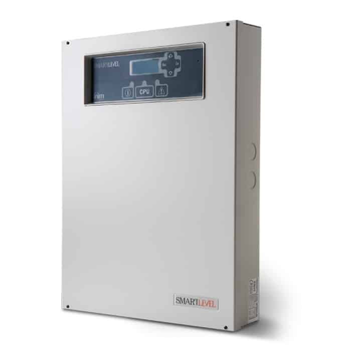 central de alimentación con display de control LCD donde es posible consultar el histórico de eventos o visualizar el detalle de averías (baterías descargadas, fallo de red, diferenciales, etc.) y la absorción de corriente de cada salida; 3 salidas protegidas individualmente con limitación de corriente a 4A, conectables al bus RS485 de las centrales de detección de incendios.