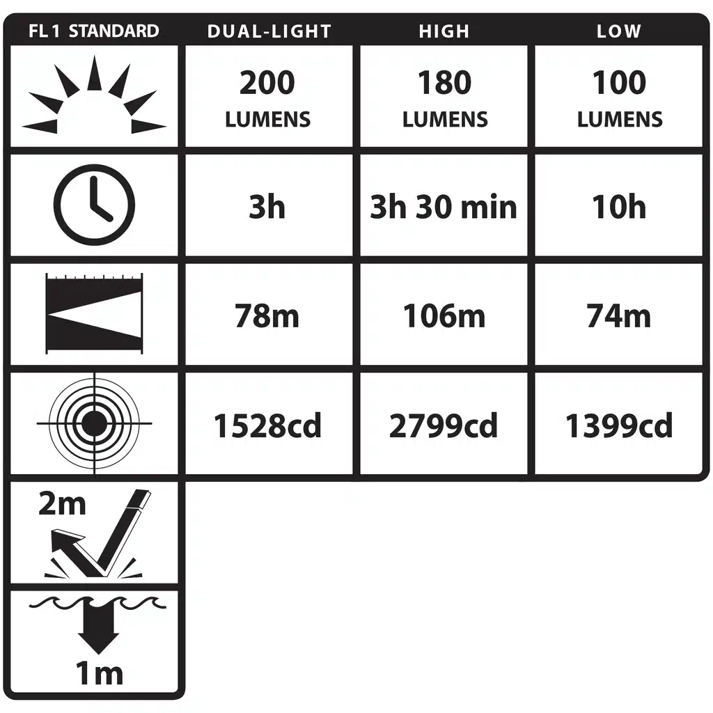 Diseñado específicamente para cascos contra incendios y cascos con protector facial abatible. La forma única de bajo perfil permite al usuario trabajar sin tener que quitarse el faro al subir o bajar el protector facial.