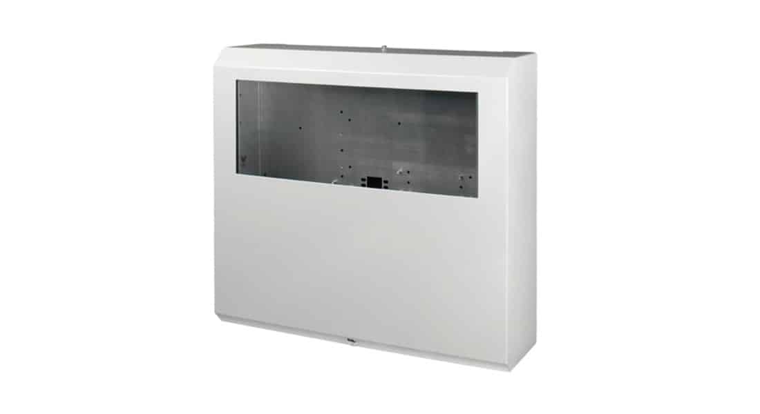 Carcasa A1 para sistema F1, corte para panel de control sin LED de grupo de alarma, capacidad para máx. 6 bucles / 24 grupos de alarma límite, incluida cerradura sin electrónica incorporada preparada para alojar una extensión básica “Solución F1”