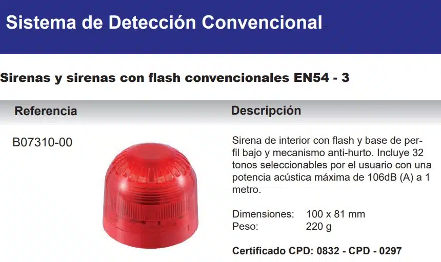 Sirena con flash convencional con base baja. Incorpora múltiples tonos seleccionables y tecnología LED de alta luminosidad.