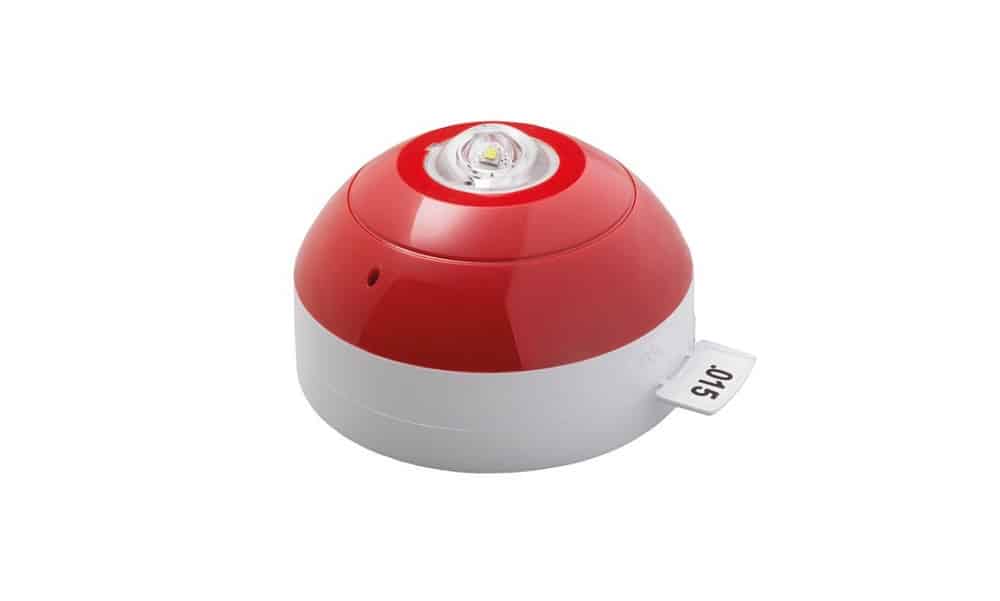 Luz estroboscópica EN54-23, clasificación: C-3-8, alimentada por anillo, direccionable, cuerpo rojo, flash blanco