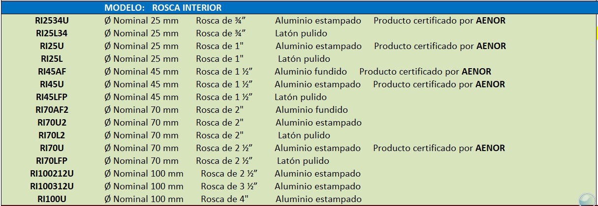 Eaci RI Racor Barcelona Rosca Interior Desde 25mm Hasta 100mm