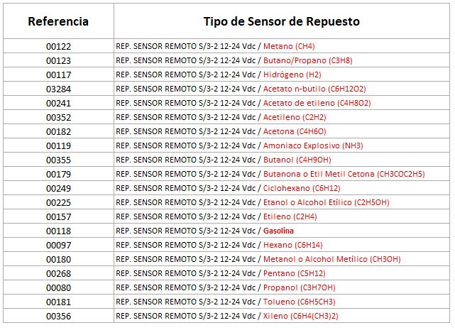 Sensor de Repuesto de Detector de Gas Fidegas S/3-2 12-24 Vdc.