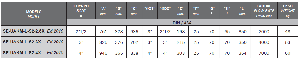 • Brida de entrada DIN o ASA en acero al carbono