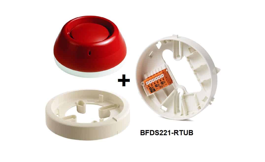 KIT Sirena de lazo, roja, FDS221-R con Base analógica FDB221, y base FDB291 para acoplamiento en superficie