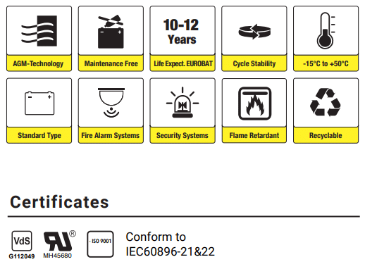 FA2005-A1 Batería 12V, 18Ah para sistemas de detección de incendios, Certificada VdS