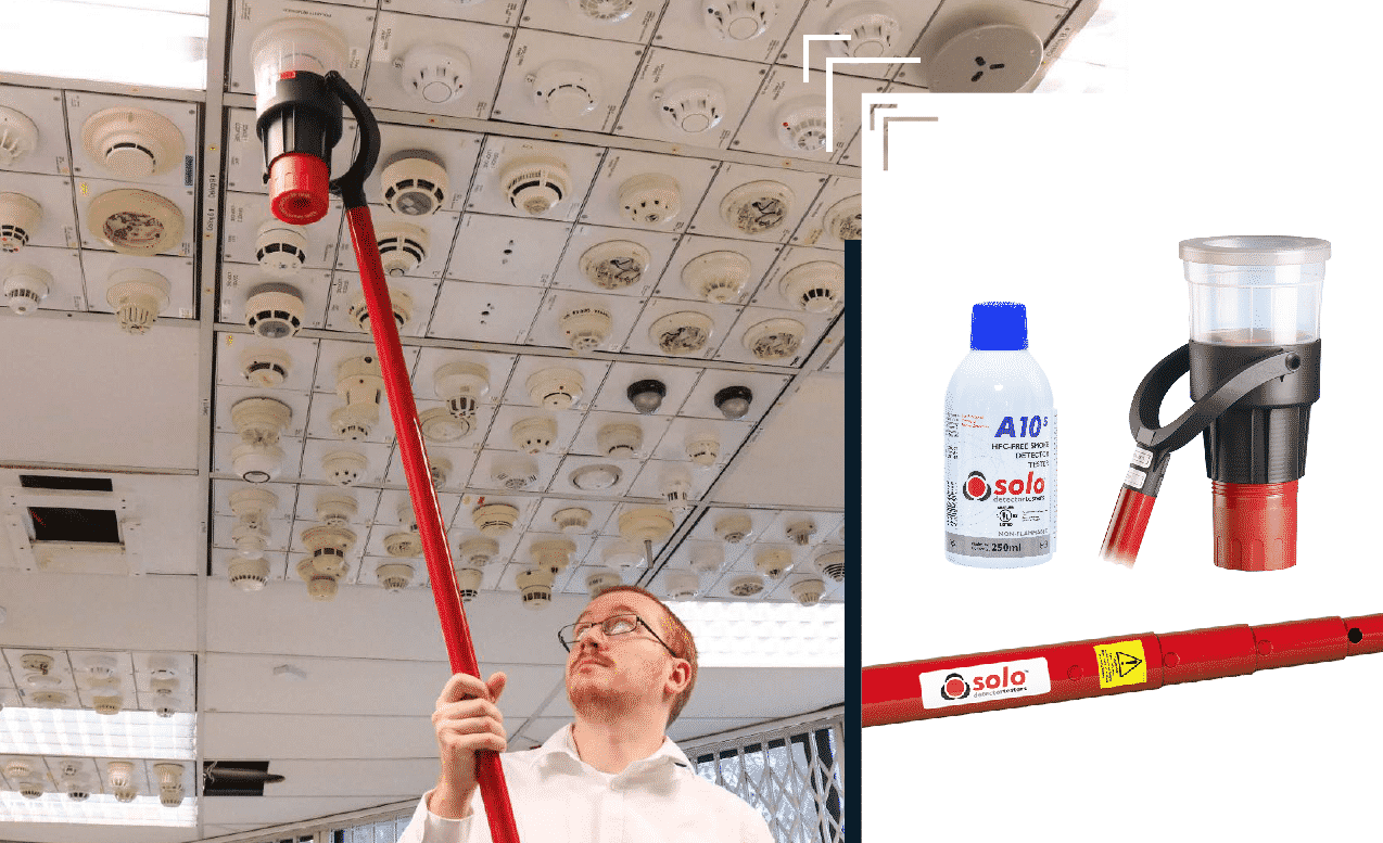 Es fundamental para la comprobación de detectores de humo en profesionales de todo el mundo el SOLO 330, contiene un aerosol de prueba y asegura que se aplique correctamente la cantidad necesaria.