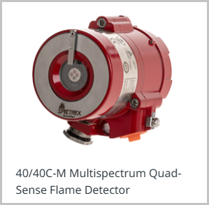 El SharpEye 40/40C-M, un detector de llamas QuadSense IR multi-espectro, proporciona detección a larga distancia de incendios de hidrocarburos e hidrocarburos a hasta 215 pies (65 m), detección rápida en menos de cinco segundos.