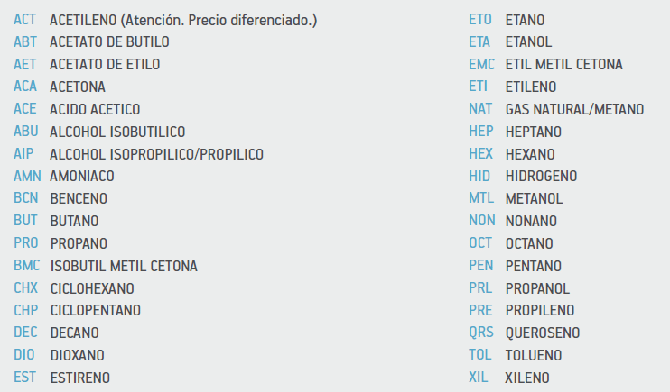 (*) Ver lista de gases hidrocarburos disponibles Abajo.