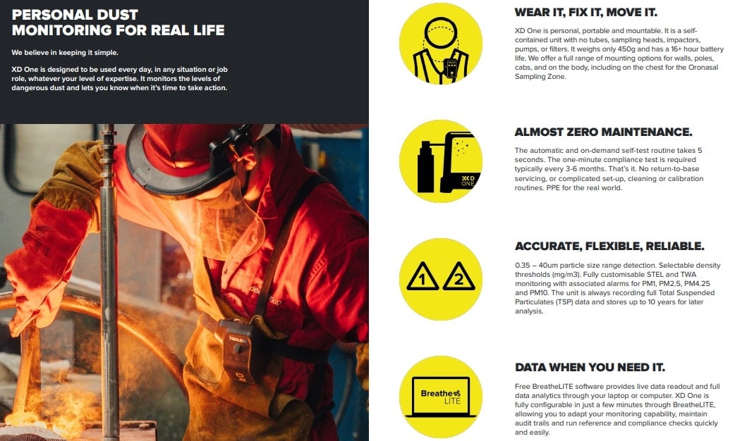 El monitor de polvo personal Trolex TX8060 XD One está diseñado específicamente como