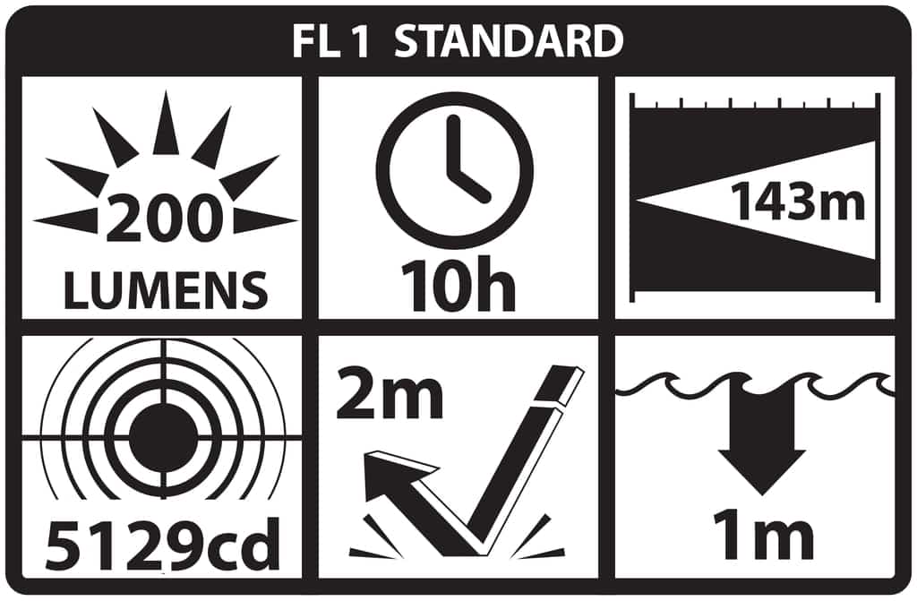 Esta luz utiliza un LED de 200 lúmenes que funciona con un reflector parabólico profundo para crear un haz de luz de linterna de 143 metros.