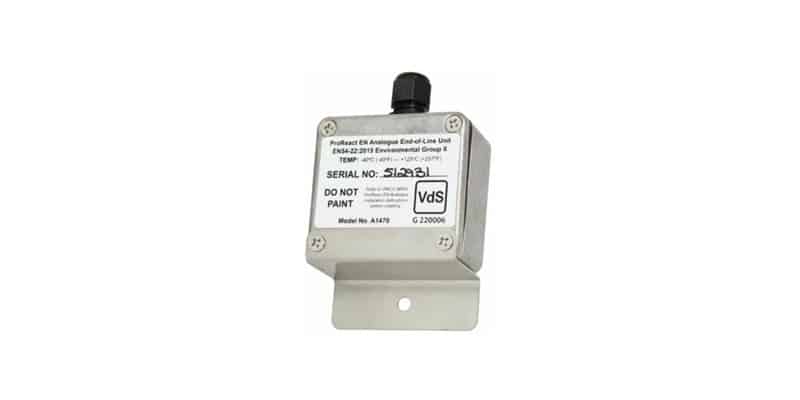 La unidad final de línea analógica ProReact EN es obligatoria en todos los sistemas LHD analógicos ProReact EN, ya que tiene un papel clave en el funcionamiento de la tecnología, permitiendo que la unidad de control detecte un cortocircuito o un circuito abierto en el cable del sensor.