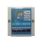 Incluye un gráfico de barras vertical de 20 segmentos, una pantalla numérica de 2 dígitos, una sirena e indicadores de alarma y avería.