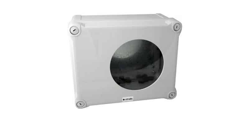 Las carcasas acristaladas están hechas de ABS. La ventana de vidrio causa una atenuación mínima de los haces UV e IR.