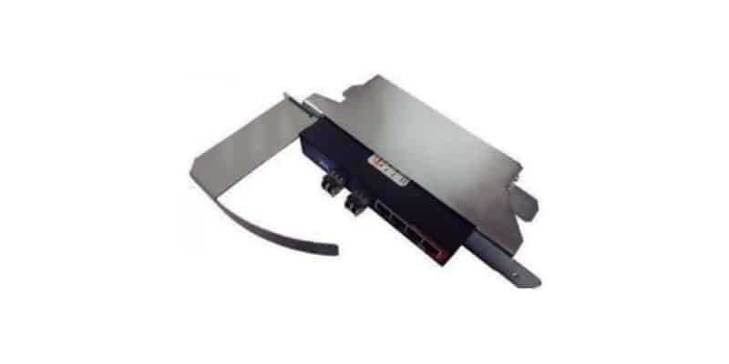 El POS800 es un conmutador que proporciona 4 puertos ethernet y 2 puertos de fibra óptica (SFP para la conexión de fibras monomodo)