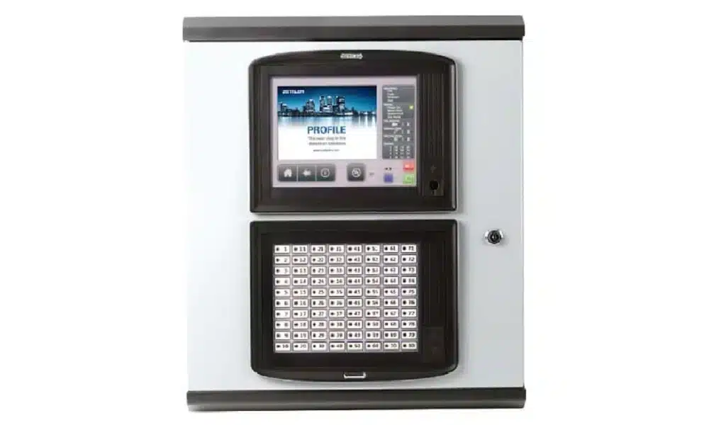 PROFILE Flexible es un sistema digital y direccionable de alarmas de incendio con muchas funciones, que cuenta con una avanzada interfaz de usuario en pantalla TFT táctil, en color, diseñada ergonómicamente para el control del sistema. La pantalla táctil se puede utilizar con o sin guantes y cuenta con sencillos controles de usuario, como el acceso sin claves mediante tarjetas RFID.